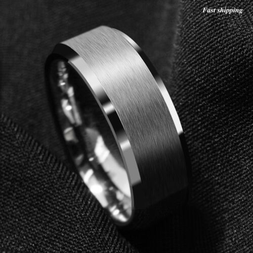 8mm Brushed Silver Tungsten Carbide Mens Wedding Band Comfort Fit ATOP Ring
